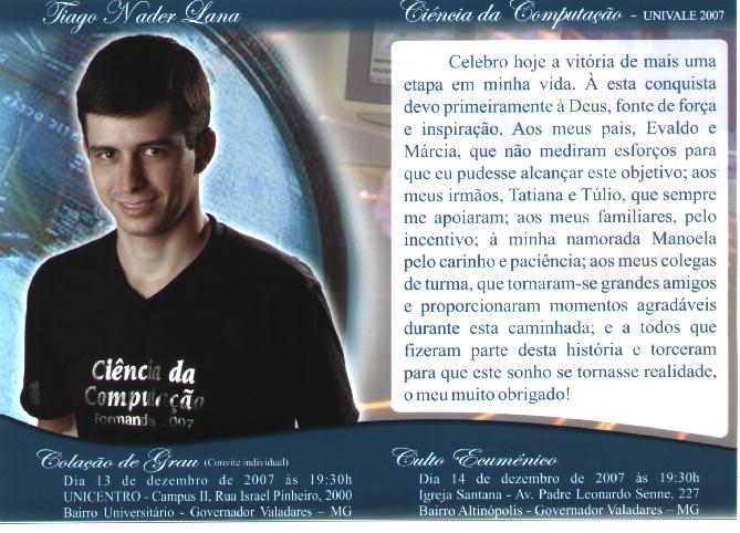 FORMATURA TIAGO - CIÊNCIA DA COMPUTAÇÃO - UNIVALE 2007 - PARÓQUIA SANTANA