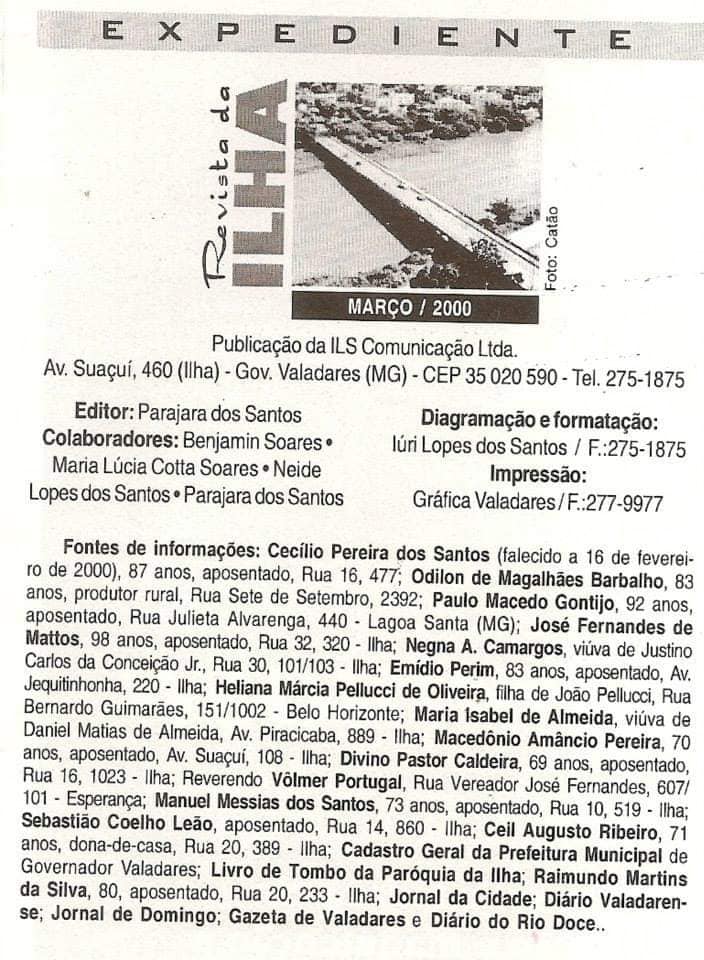 Fontes: Página "Valadares Antigamente" , Grupo "Vale do Rio Doce" (Facebook), http://www.valadares.mg.gov.br , http://diocesevaladares.com.br , http://www.saaegv.com.br , http://www.cemig.com.br , Livro Epopéia dos Pioneiros, Edmar Campelo Costa , https://pt.wikipedia.org/wiki/Esporte_Clube_Democrata