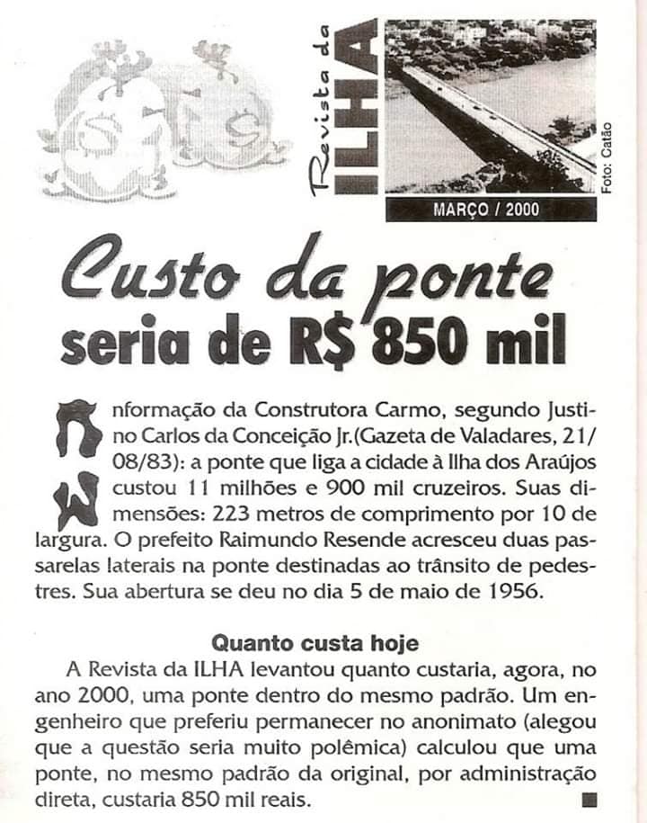 Em 1993, calculou-se que cerca de 27.000 valadarenses haviam emigrado para o exterior, grande parte deles na faixa entre 16 e 35 anos. Os dólares enviados pelos emigrantes movimentaram a indústria da construção civil, o comércio e propiciaram a abertura de muitos negócios. Estes recursos foram fundamentais para manterem a dinâmica da economia nos anos 1980 e 90.Ponte "Pedro Nolasco", também conhecida como "Antiga Ponte de Derribadinha", construída em formato de curva sobre o Rio Doce, em 1909. O distrito de Derribadinha era a última Estação de trens antes da chegada a Figueira(Gov. Valadares), vindo do Espírito Santo. Esta ponte só veio a ser desativada na década de 1950 em virtude de o seu formato curvo obrigar a uma diminuição excessiva da velocidade das novas locomotivas Diesel-elétricas que eram muito maiores e mais pesadas que as antigas "Maria-Fumaças".