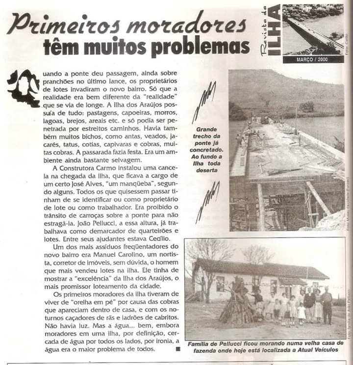 ILHA DOS ARAUJOS: pertencia a D. Maria Araújo, que vendeu a família do sr José Serra Lima, depois para Dr Justino, que a transformou em bairro. Nome oficial é Cidade Jardim Nossa Sra. do Carmo.