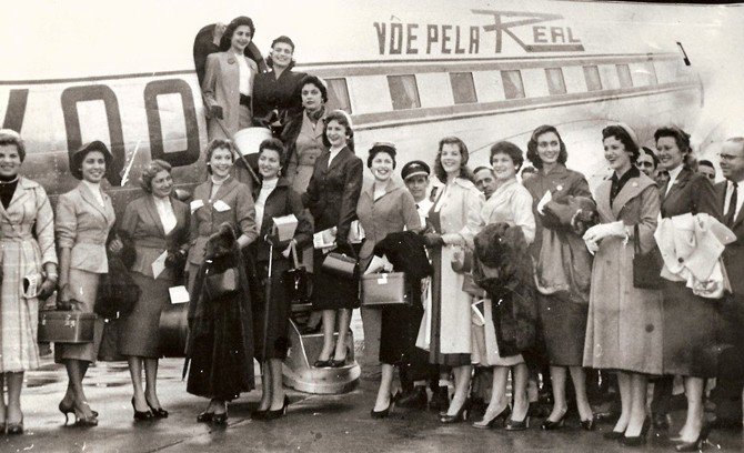 A Valadarense, Maria Aparecida Benz, após ser eleita Miss Minas Gerais, em 1955. A Valadarense, Maria Aparecida Benz(2° da direita para a esquerda), já como Miss Minas Gerais, se une às candidatas eleitas dos outros Estados para disputar o Concurso de Miss Brasil, no Galeão, Rio de Janeiro.