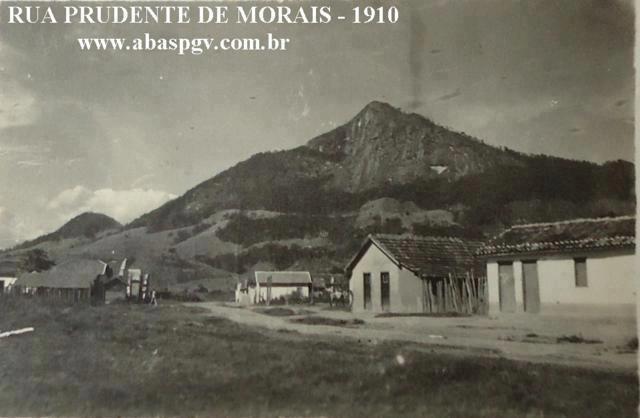 Rua Marechal Floriano, antigo pátio de manobras da Estrada de Ferro Vitória-Minas(atual Praça dos Pioneiros). Destacam-se, à direita, os fundos da "Antiga Estação Ferroviária". À esquerda, na esquina, o "Armazém Said Hilel"(atual edifício Rio Doce) e o sobrado do farmacêutico "Otávio Soares Ferreira".