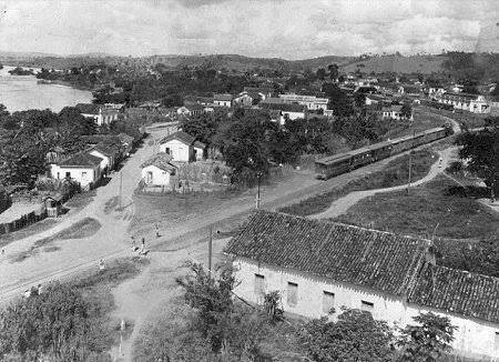 1952 - Linha férrea ao longo da Rua São Paulo, no Centro da cidade, ligando a "Nova Estação Ferroviária"(atual) à "Antiga Estação", na Rua Marechal Floriano. Este ramal ferroviário foi utilizado por quase 2 anos até ser desativado em 1954. Foto tirada à partir do atual Quartel do Corpo de Bombeiros. Os dois predios ao fundo na esquina da 7 de setembro existem até os dias atuais (2020).