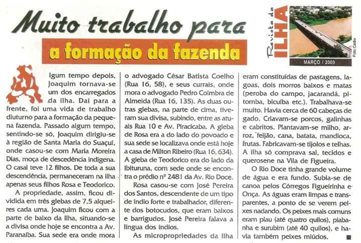 Em 1907, foi inaugurada a estação ferroviária da Estrada de Ferro Vitória-Diamantina (Vitória-Minas), na localidade de Derribadinha, às margens do Rio Doce, no lado oposto ao povoado de Figueira.