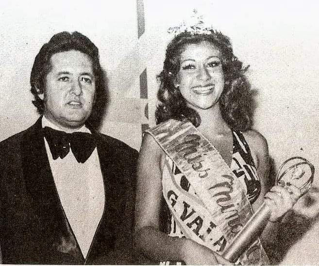 Jornalista Nicolau Netto, então promotor do Concurso de Miss Minas Gerais no Ginásio Coberto da Praça Esportes e a Valadarense Karla Rezende Habib, eleita Miss Minas Gerais 1976 entre 55 candidatas.