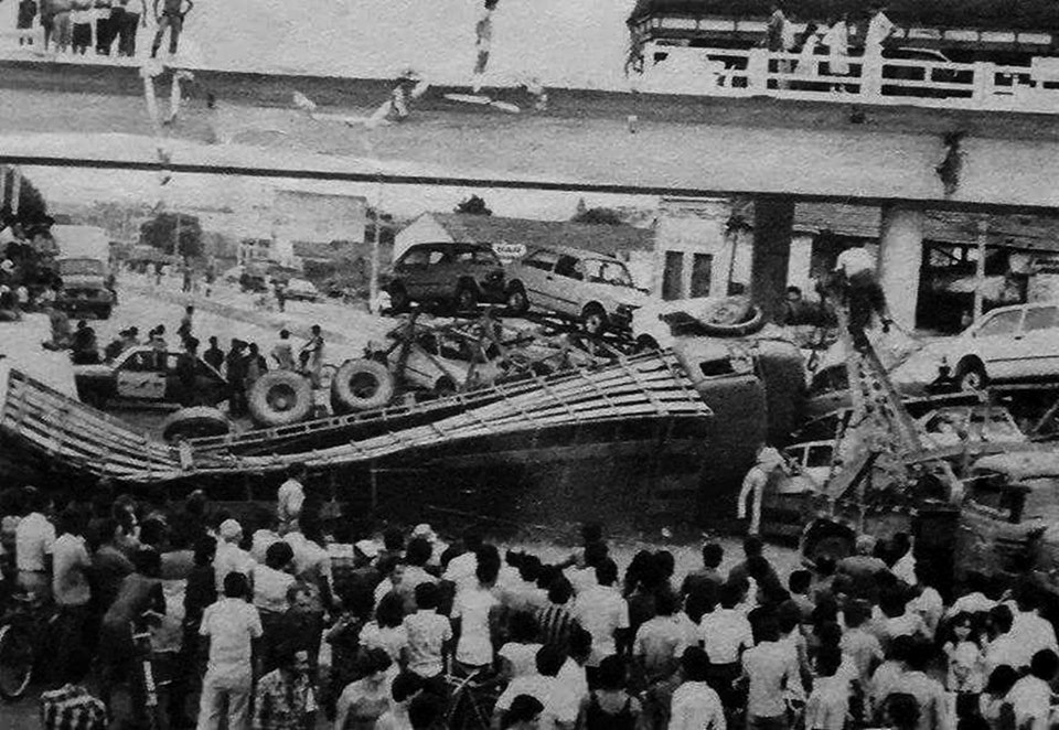 Década 1960 e 1975 - Avenida JK. Foto obtida à partir do Viaduto da Rio-Bahia. Em 1970 houve um acidente um caminhão de bois caiu sobre uma carreta cegonha cheia de carros.
